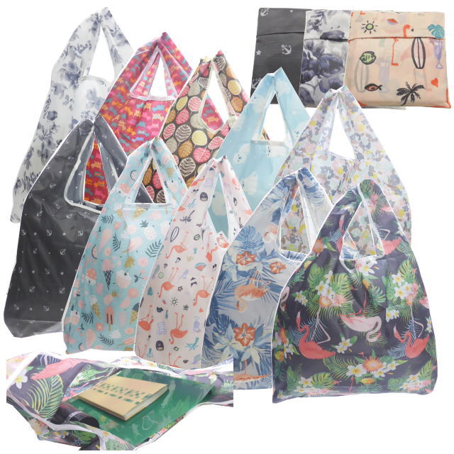 折りたためてコンパクトカラフルなデザインが可愛い♪軽くて使いやすい!レジ袋にぴったり!!内側のポケットに折りたためるコンパクト折りたたみエコバッグ ショッピングバッグ