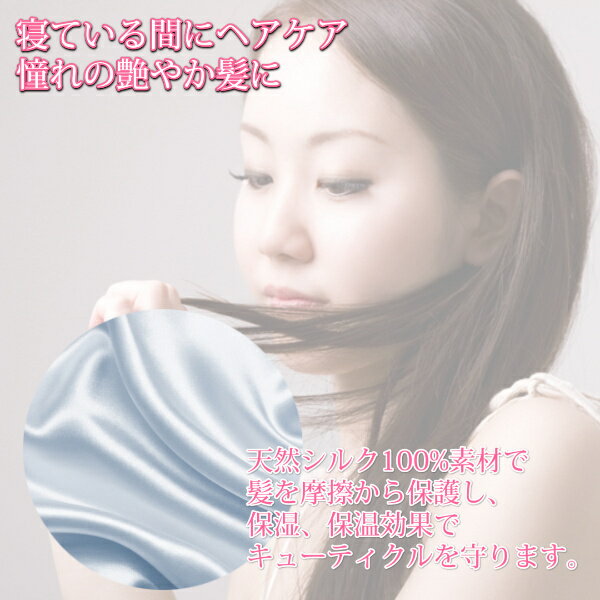 シルクの力により髪の毛を保護、保湿、保温、枕やシーツとの摩擦によるダメージから髪を守ります。