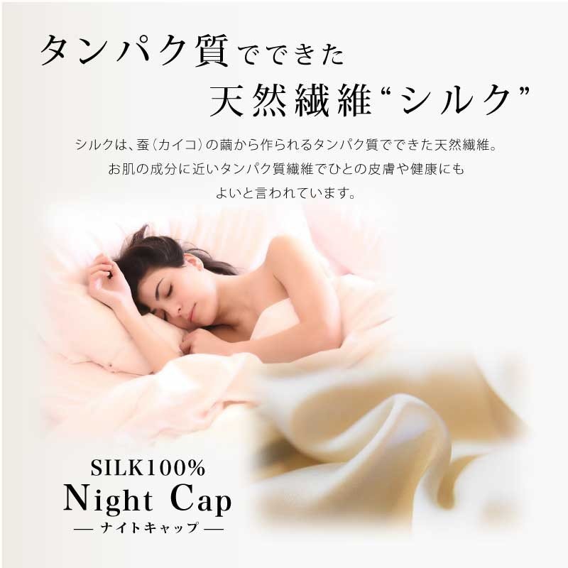 保湿効果の高いシルク素材のナイトキャップです。