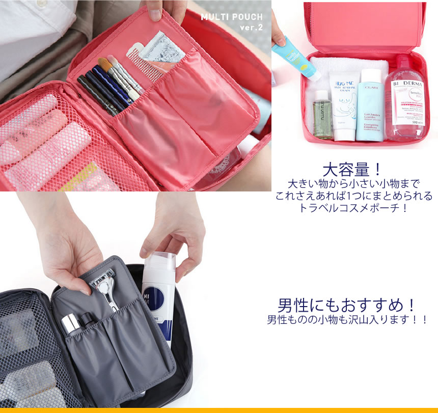 ■商品説明 旅や出張を快適なものにしてくれる便利なアイテム 大きい物から小さい小物まで これさえあれば1つにまとめられる 大容量トラベルコスメポーチ! シンプルなデザインで機能性文句なし! このサイズで小物がたくさん収納できるウォッシュバッグ。